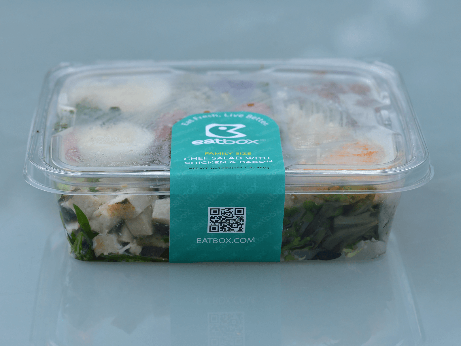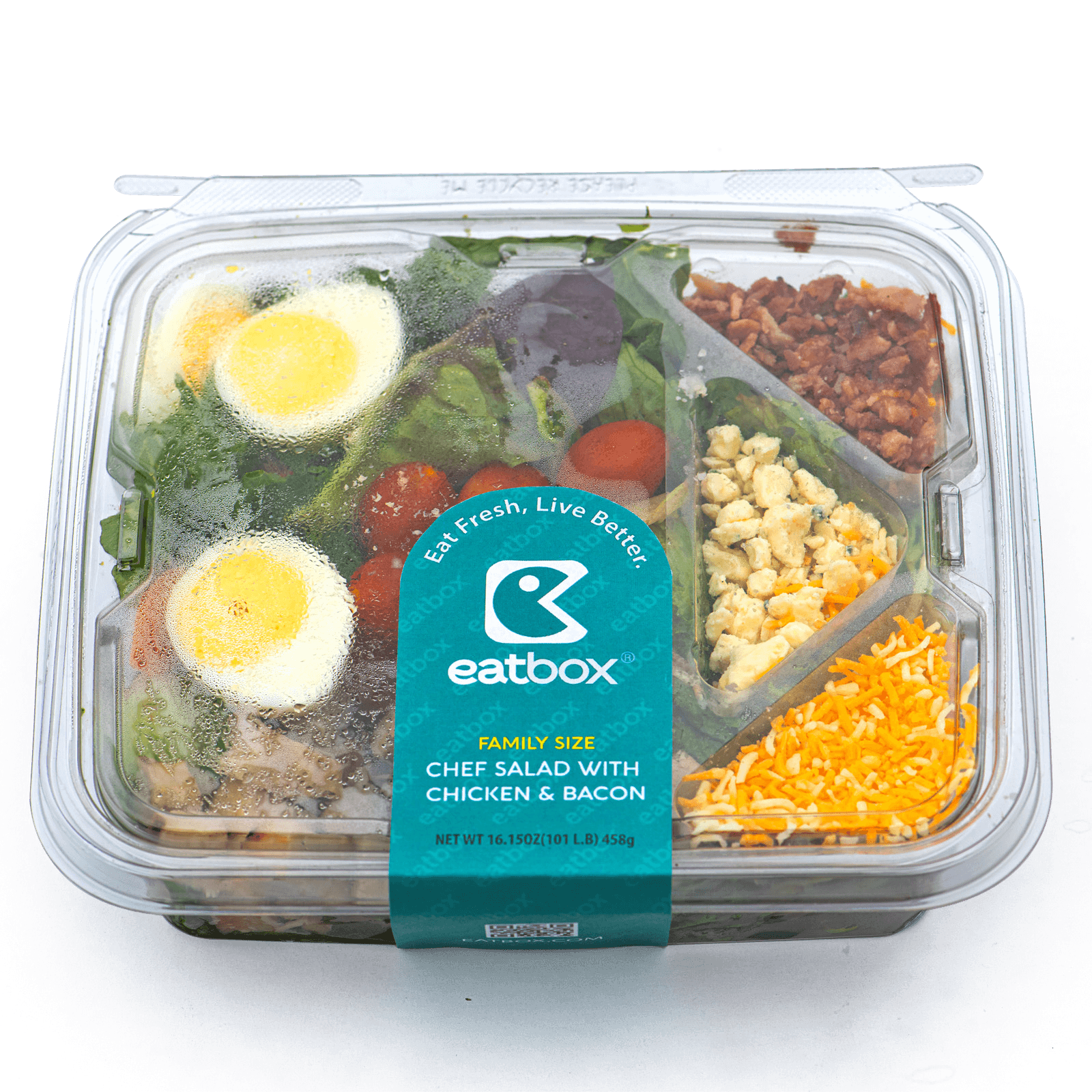 EATBOX Chef Salad With Chicken & Bacon (Family Size) starts with fresh spring mix,